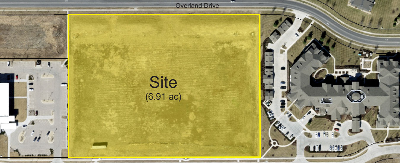 This property is ready for development and approved for multi-family residential. Utilities are to the site. This area has experienced strong, steady growth with residential, commercial, and the City’s new Rock Chalk Park…